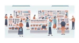 Kedai yang lebih besar atau yang pakar dalam bidang tertentu (seperti elektrik atau paip) selalunya mempunyai staf yang berpengetahuan untuk memberi panduan.