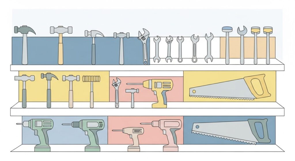• Alat pertukangan asas hingga khusus.