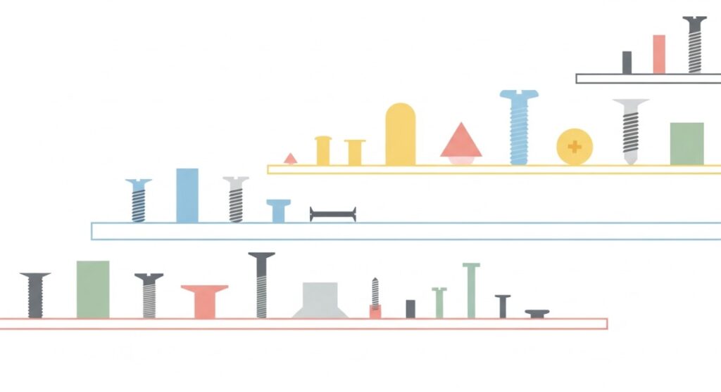 | Paku, Skru & Nat | Pelbagai saiz dan jenis untuk kegunaan berbeza. |